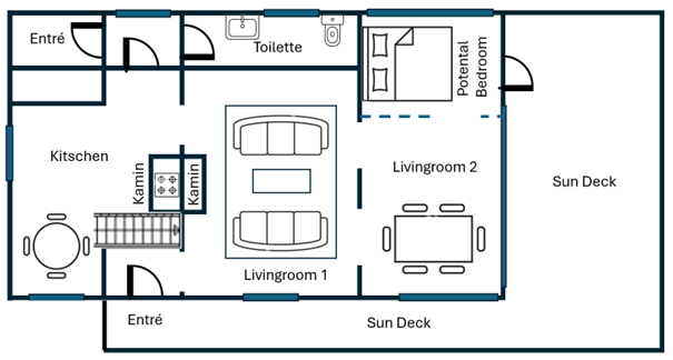 - Möglichkeit zur Abtrennung eines Schlafzimmers im Erdgeschoss