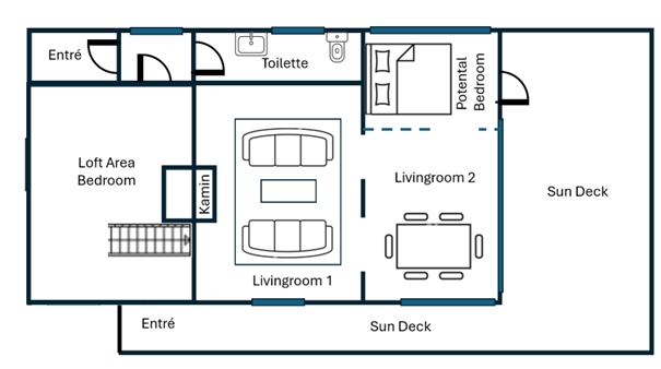 - 2 Zimmer + Küche + Toilette + Loft