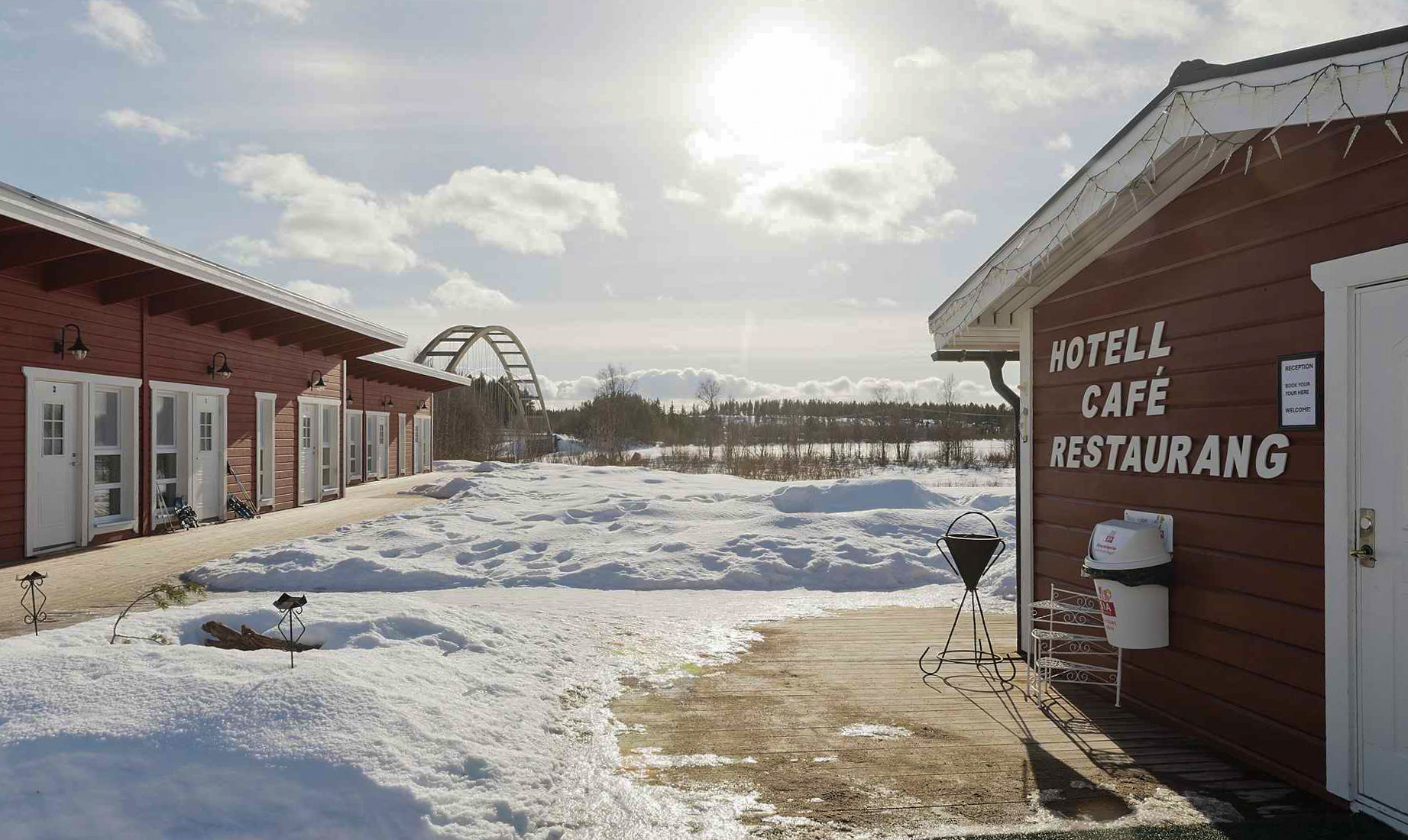 Entfliehen Sie dem Alltag und finden Sie Ihren neuen Wirkungskreis inmitten der einzigartigen Natur Schwedisch-Lapplands. Die Lodge, Hotel, Restaurant & Campingplatz liegt idyllisch direkt an der E10, am malerischen Ufer des Kalix-Flusses.